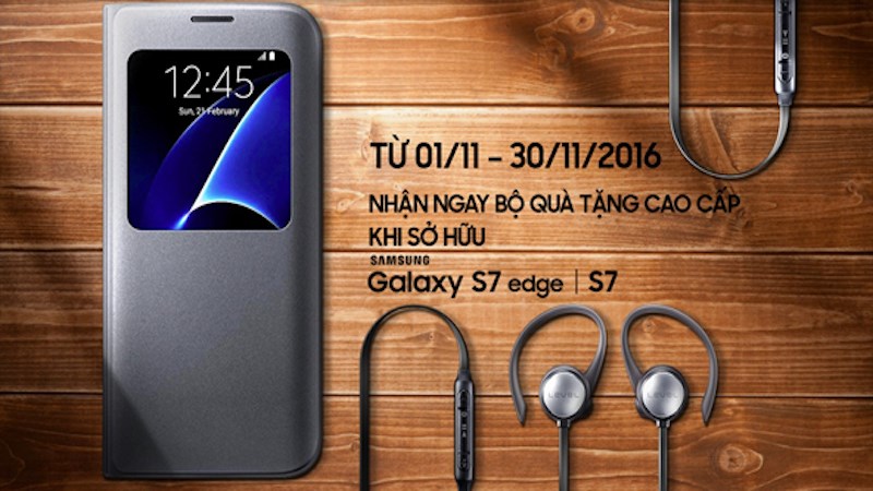 Tặng ngay bộ quà tặng trị giá 2.580.000 VNĐ bao gồm 1 Tai nghe Bluetooth Level Active (trị giá 1.490.000 VNĐ) và 1 Bao da S-View (trị giá 1.090.000 VNĐ) khi mua điện thoại Galaxy S7 hoặc Galaxy S7 Edge với mã ưu đãi dành riêng cho khách hàng đang sở hữu sản phẩm Samsung chính hãng thuộc một trong các dòng sản phẩm sau: